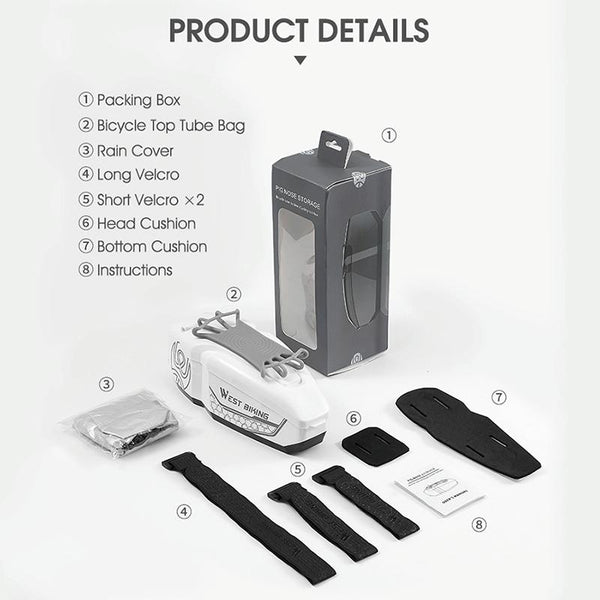 WEST BIKING Bicycle Front Beam Top Tube Bag Mountain Road Bike Waterproof Riding Equipment(White)