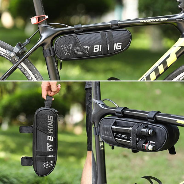 WEST BIKING Bicycle Triangle Reflective Bag Large Capacity Cycling Bag Horizontal Beam Bag Anti-Splashing Road Car Bag, Size: 1.3L(Black)