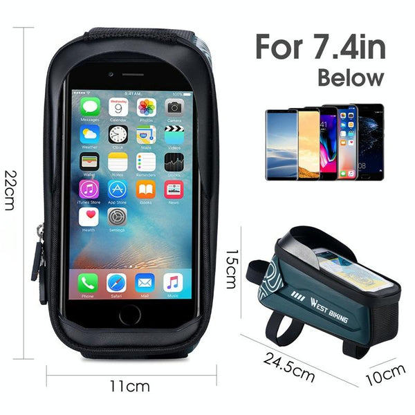 WEST BIKING Bicycle Upper Tube 2.2L Hard Shell Bag For 7.4 Inch Mobile Phone(Black)