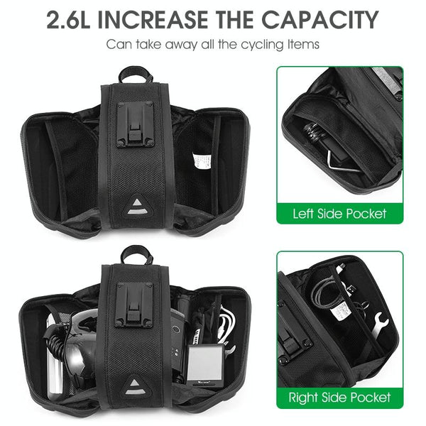 WEST BIKING Large Capacity 2.6L Bicycle Tail Bag Hard Shell Saddle Bag Adjustable Bracket Seat Cushion Tail Bag(Black)