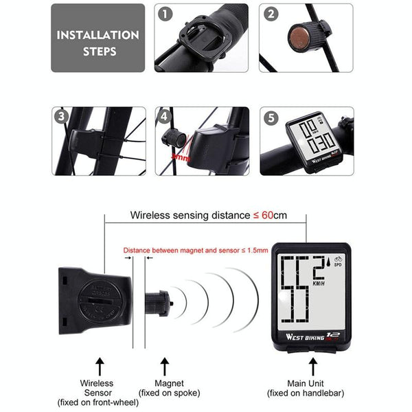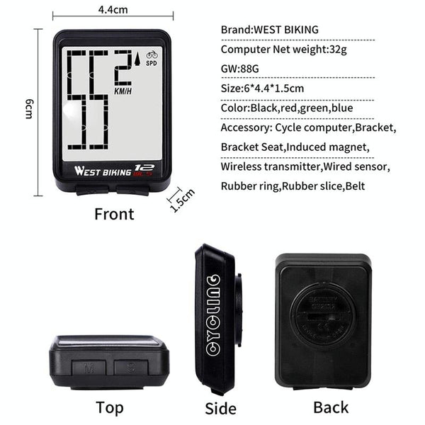 WEST BIKING Mountain Road Bike Wireless Big Character Table Big Screen Waterproof Night Light Speed Speedometer(Green)