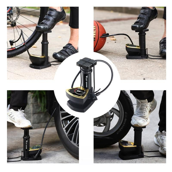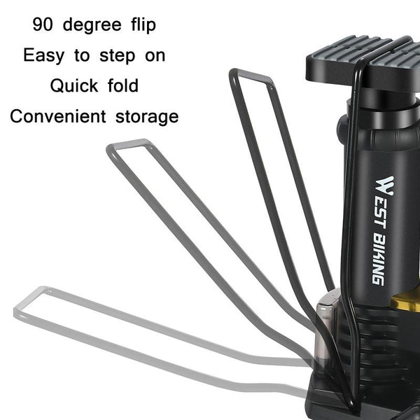 WEST BIKING Portable Mountain Bike Foot Pump With Barometer(118 Black)
