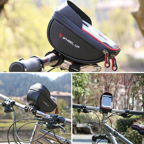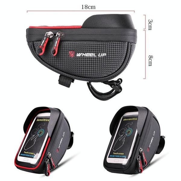 WHEEL UP Anti-splashing Touch Screen Bicycle Mobile Phone Bag Mountain Bike Front Beam Bag Riding Handlebar Bag, Style:Black and Red