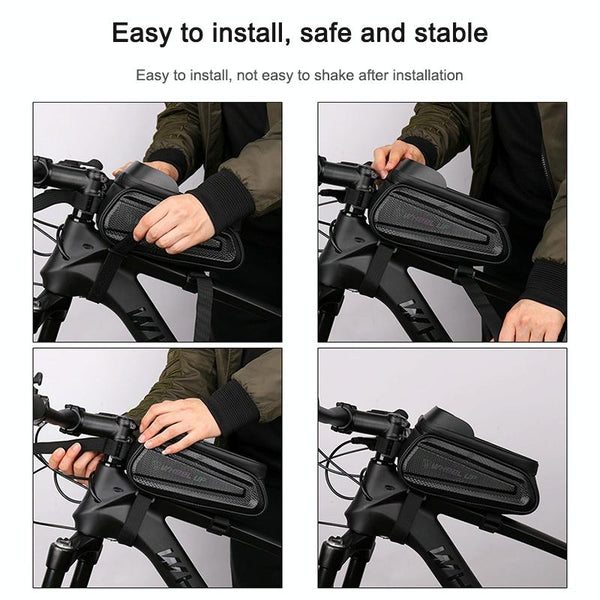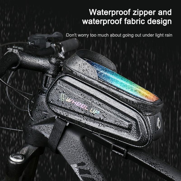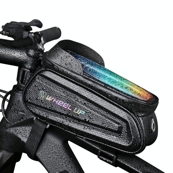 WHEEL UP Hard Shell Bicycle Bag Front Beam Bag Mountain Bike mobile Phone Touch Screen Tube Bag Riding Equipment(Colorful reflective models)