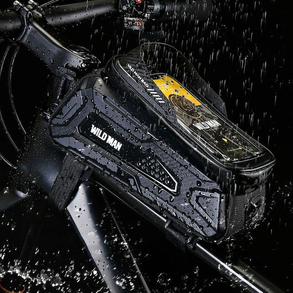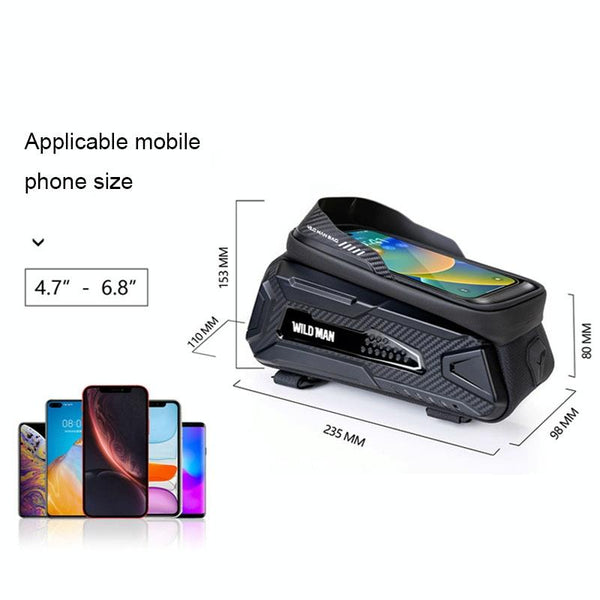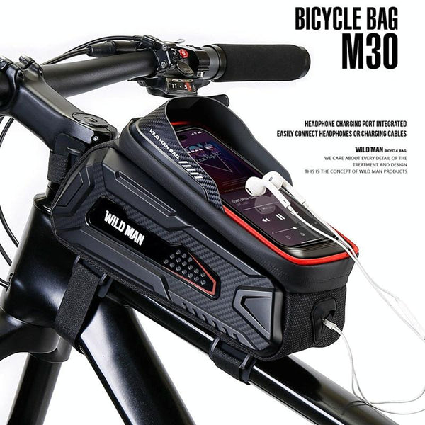 WILD MAN M30 1L Hard Shell Mountain Bike Front Beam Bag TPU Touch Screen Cycling Equipment Bag(Black Red)