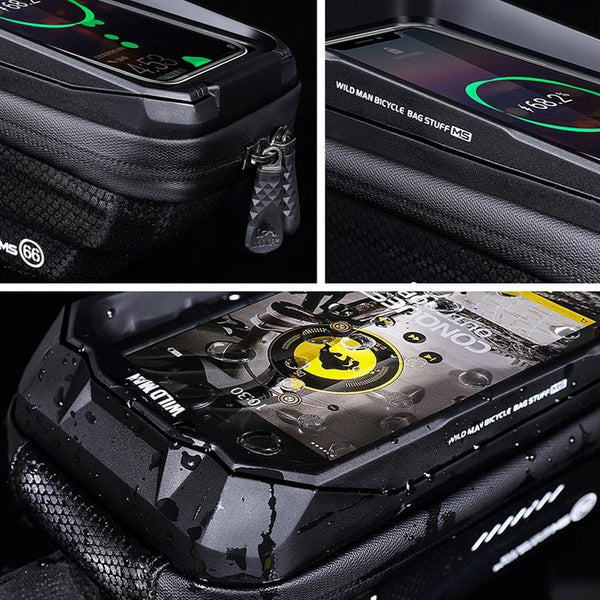 WILD MAN MS66 1.2L EVA Hard Shell Bicycle Front Beam Bag Cycling Touch Screen Phone Bag(Black)