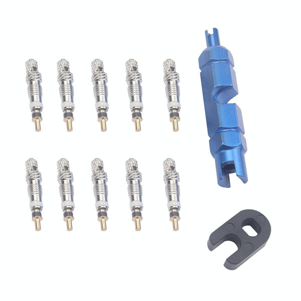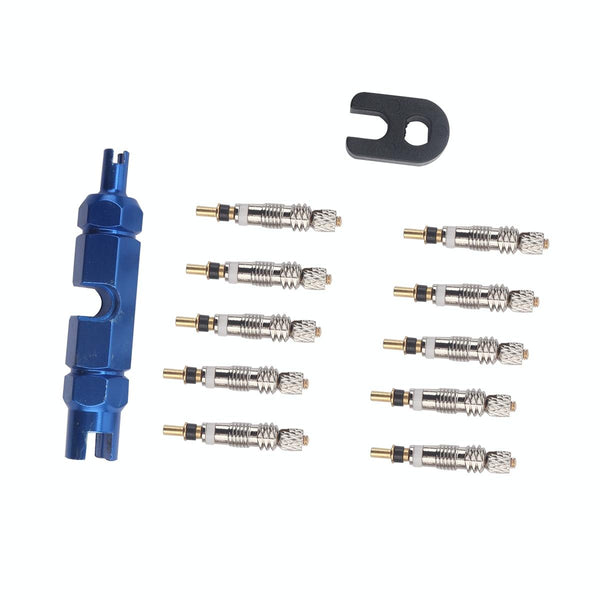 A5588 10 PCS Bicycle French Valve Core with Blue Disassembly Tool