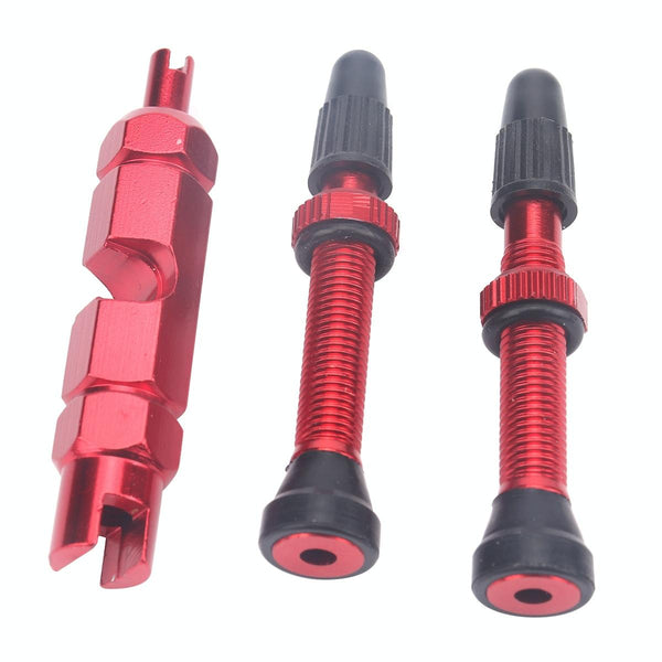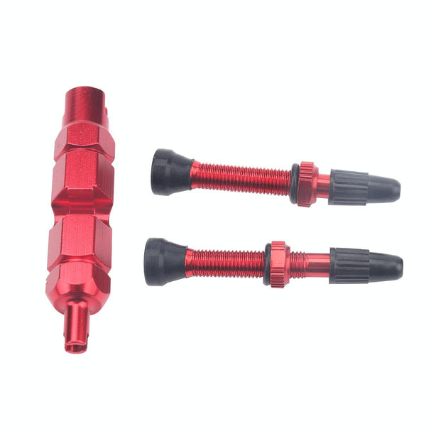 A5592 2 PCS 40mm Red French Tubeless Valve Core with Red Disassembly Tool for Road Bike