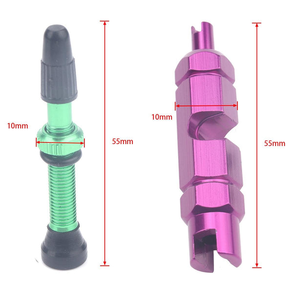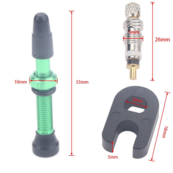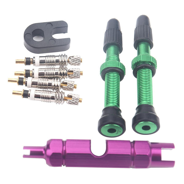 A5599 2 PCS 40mm Green French Tubeless Valve Stem with Repair Kit for Road Bike