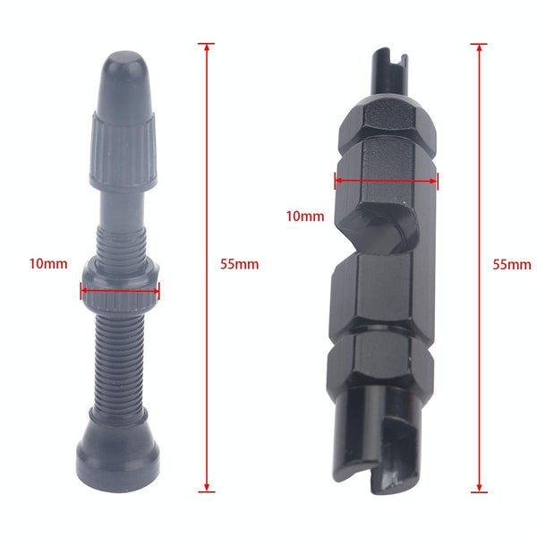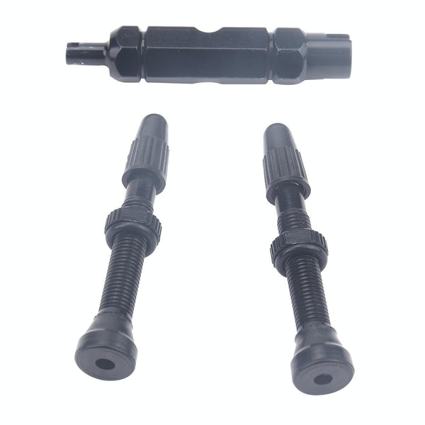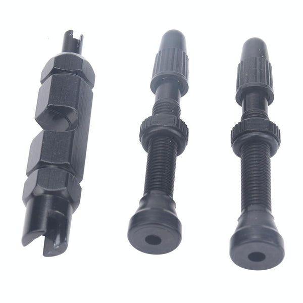 A5701 2 PCS 40mm Black French Tubeless Valve Core with Black Disassembly Tool for Road Bike