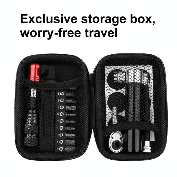 1. Portable multifunctional combination tool kit, aluminum alloy ratchet wrench, magnetic quick-connect rod, integrated storage bag, convenient and easy to carry, suitable for multiple scenarios.