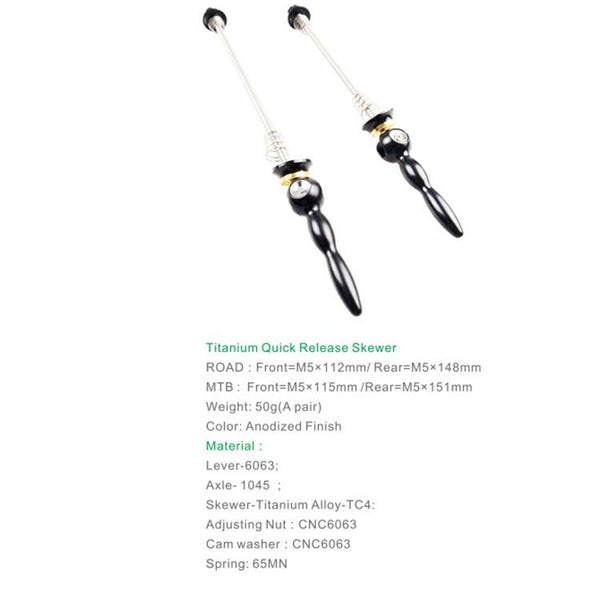 BIKERSAY Bicycle Skewers Quick Release Titanium Axle QR Wheel Hub Skewer For Road Bicycle, Model:QR001