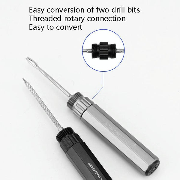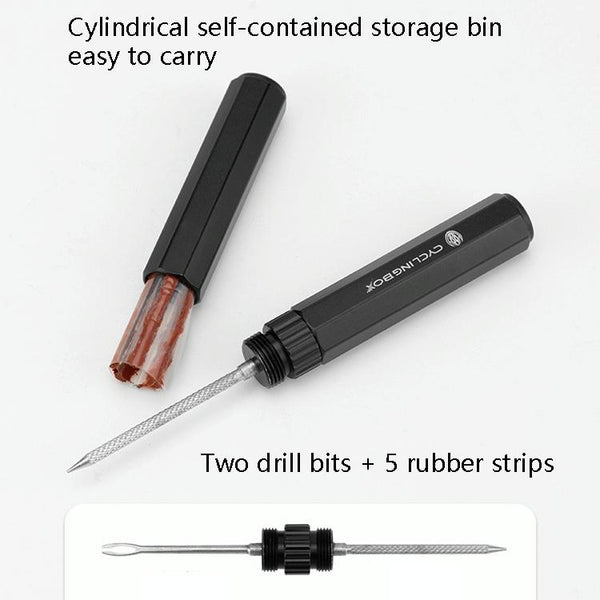4. Features: aluminum alloy storage shell, high strength, sturdy and durable, light and portable, cylindrical storage compartment, easy to carry, high-viscosity vulcanized rubber strip, quick repair, easy to use, easy conversion of two kinds of drill bits, thread Rotating connection, easy to change