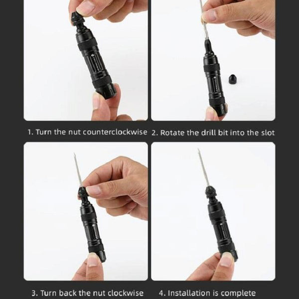 6. Features: aluminum alloy body, high strength, sturdiness and durability, cylindrical storage compartment, easy to carry, simple drill bit installation, convenient operation