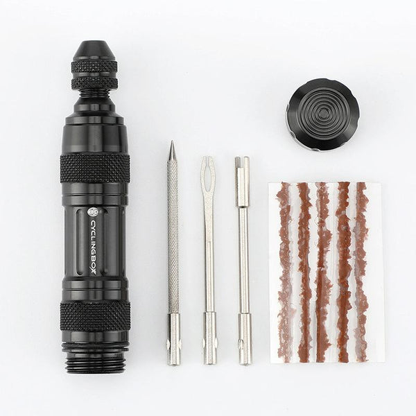 CYCLINGBOX Mountain Bike Vacuum Aluminum Alloy Tire Repair Tool Bicycle Repair Integrated Storage Design Tool(Black)