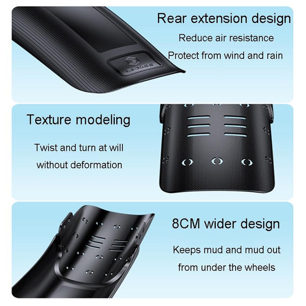 7. 8CM wider design, blocking the mud and under the wheel hub