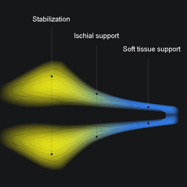 5. Comfortable saddle for hot weather and long distance riding, reducing pressure peaks on the buttocks Ventilation channels at the front and center of the saddle improve air circulation near the cyclist's point of contact