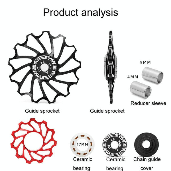 ENLEE Mountain Bicycle Rear Derailleur Guide Wheel Ceramic Bearing Tension Pulley, Size: 11T(Red)