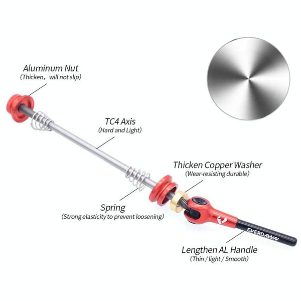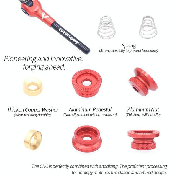 4. Features: aluminum alloy thick nut, not easy to slip, TC4 titanium alloy shaft, light weight and good strength, thick copper gasket, not easy to wear, two-color handle, beautiful personality