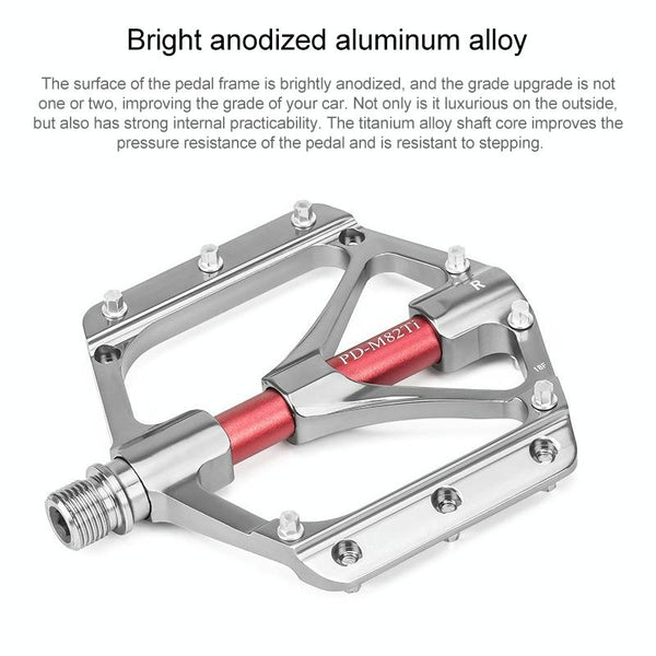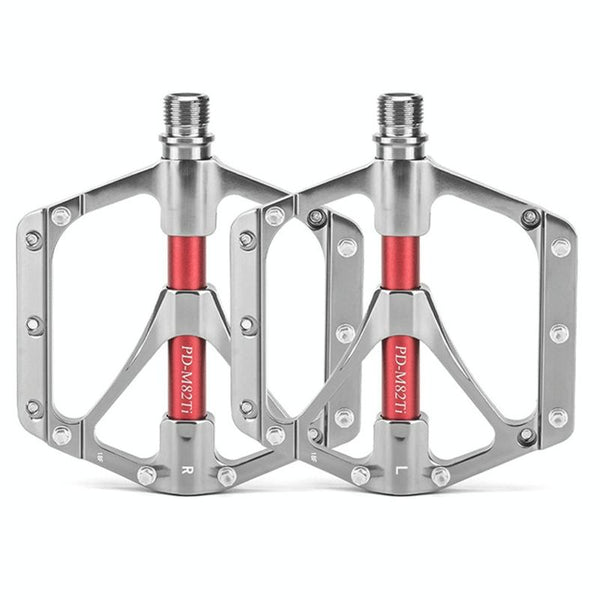 PROMEND PD-M82-TI 1 Pair Mountain Bicycle Titanium Alloy Shaft 3-Bearings Wide Pedals (Silver)