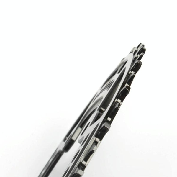 - Sprocket BCD is 104mm, confirm that the crank is 104BCD (the diameter of the circle formed by the center points of the four disc nails is 104mm, otherwise it cannot be installed