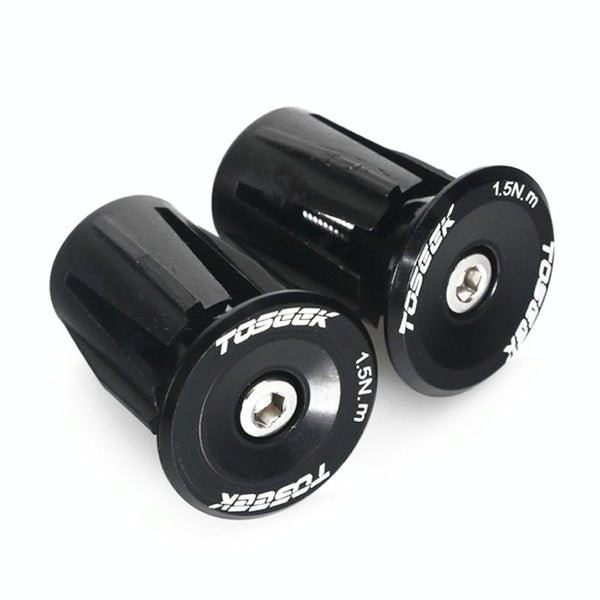 TOSEEK 1 Pair Mountain Bike Handlebar Grips Caps End Plug Aluminum Alloy BicycleBar Ends Plug (Black)