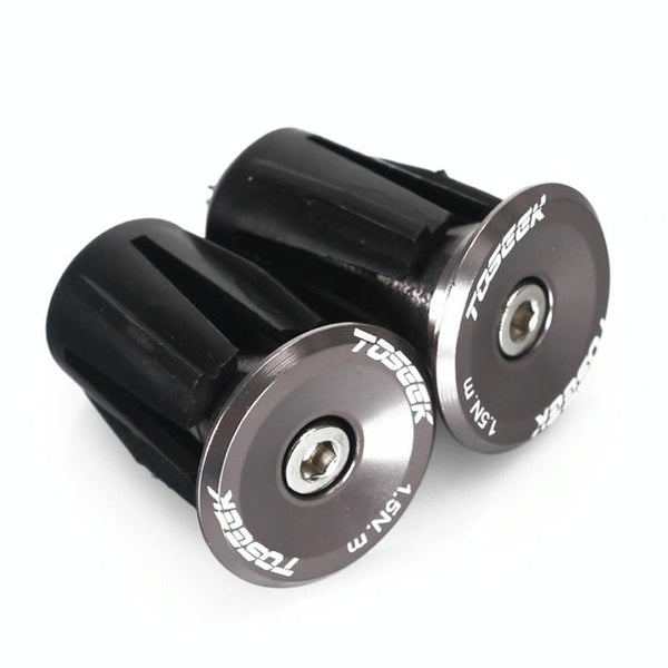 TOSEEK 1 Pair Mountain Bike Handlebar Grips Caps End Plug Aluminum Alloy BicycleBar Ends Plug (Grey)