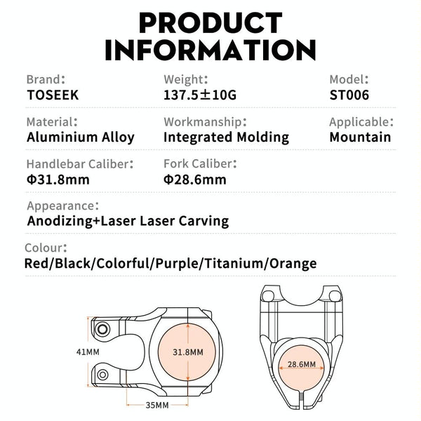 TOSEEK 35mm Aluminum Alloy Stem Bicycle Modification Accessories, Color: Purple