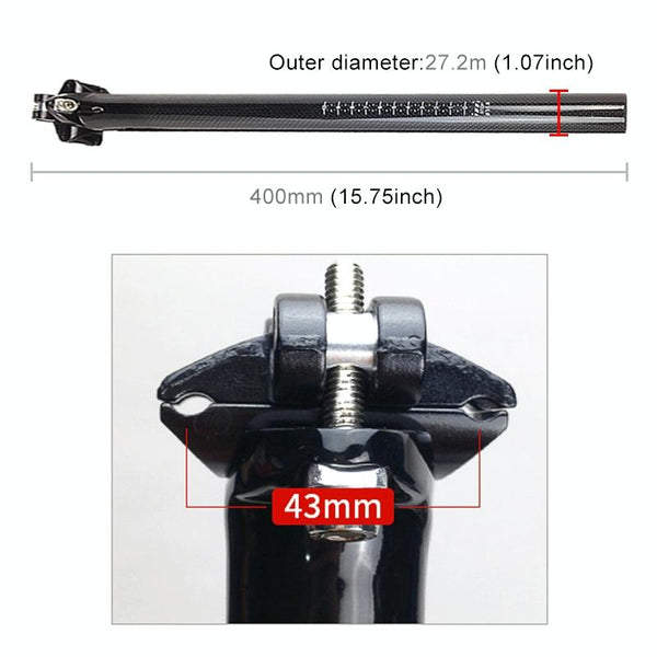TOSEEK 3K Carbon Fiber Mountain Bike Road Bike Bicycle Seat Tube Seatpost Seat Fitting Seat Pole Bicycle Fittings, Size: 27.2x400mm