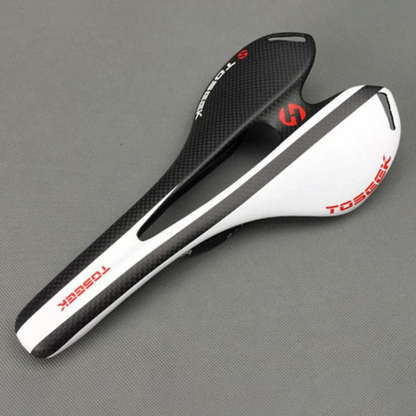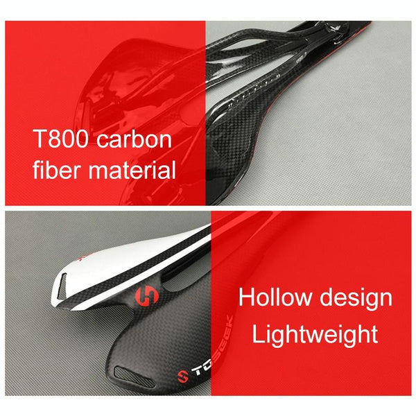 TOSEEK Road Bike Carbon Fiber Seat Bicycle Hollow Seat Saddle, 3K Texture + Extinction(White)