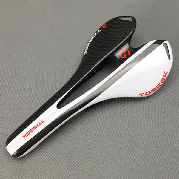 TOSEEK Road Bike Carbon Fiber Seat Bicycle Hollow Seat Saddle, 3K Texture + Light (White)