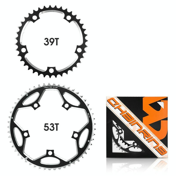 WEST BIKING 2-Piece 53t-39t Road Bike Aluminum Alloy Gear(Black)