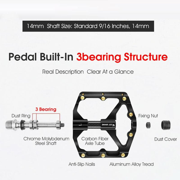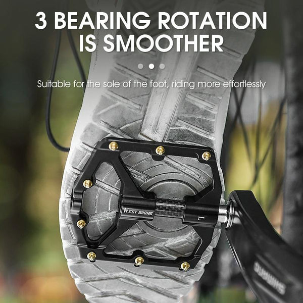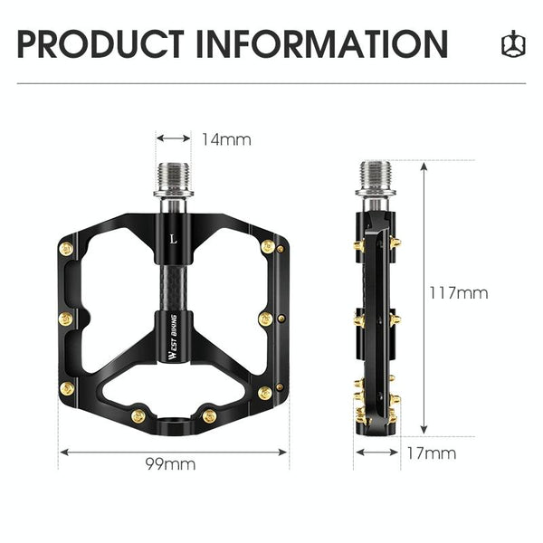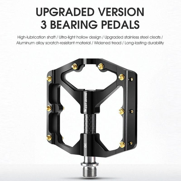 WEST BIKING 3 Bearings Ultralight Carbon Fiber Bushing Mountain Bike Pedal(Black)