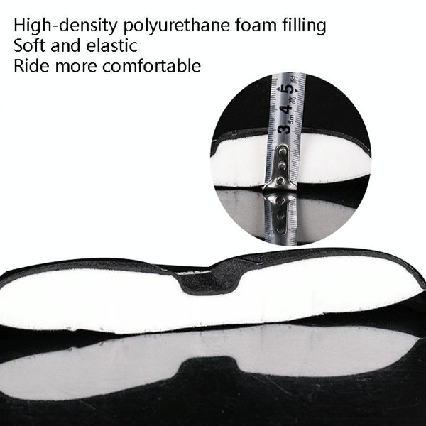5. Features: high-density polyurethane foam filling, soft and elastic, more comfortable to ride, hollow design, reduce pressure, breathable and not sultry, the skin is made of wear-resistant and tensile PVC, smooth and comfortable, and the bottom is arc-shaped. Vibrating bow design provides powerful shock absorber function, narrow front and round rear, rounded curves, comfortable sitting