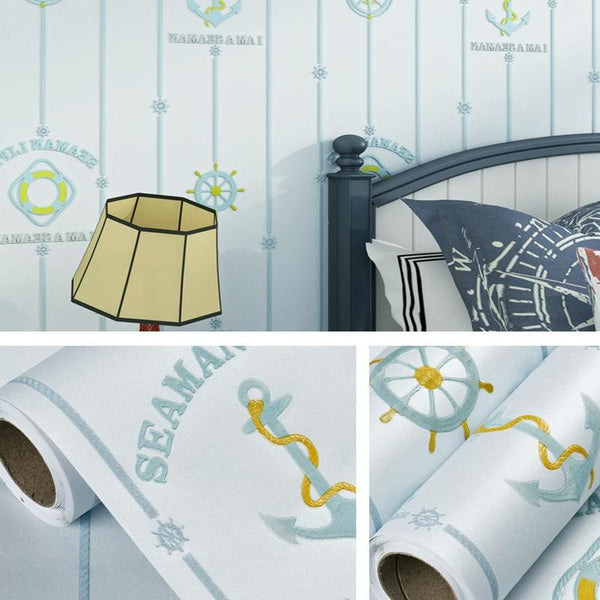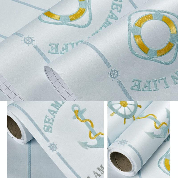 0.53 x 3m 3D Stars Moon Self-Adhesive Wallpaper Mediterranean Children Wall Sticker(2502 Light Blue)