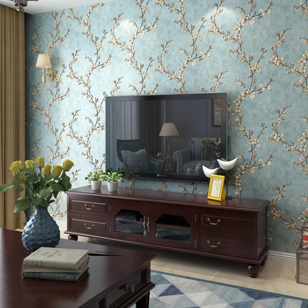 0.53x3m Retro 3D Stereo Plum Blossom Wallpaper Bedroom Living Room TV Background Wall Self-Adhesive Wallpaper(8804-3 Light Blue A Version)