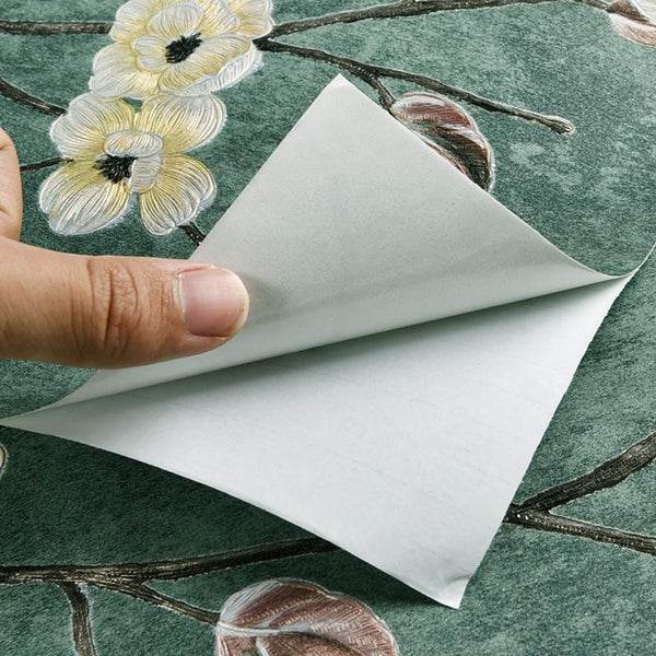 0.53x3m Retro 3D Stereo Plum Blossom Wallpaper Bedroom Living Room TV Background Wall Self-Adhesive Wallpaper(9904-4 Retro Yellow B Version)