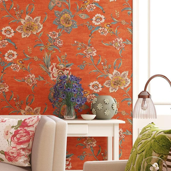 0.53x5m 3D StereoRetro Self-Adhesive Non-Woven Wallpaper Pastoral Flower Bedroom Living Room TV Background Wall Sticker(0403 Big Orange Flower)