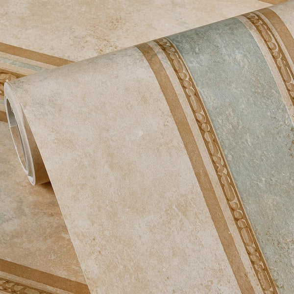 0.53x5m 3D StereoRetro Self-Adhesive Non-Woven Wallpaper Pastoral Flower Bedroom Living Room TV Background Wall Sticker(1014 Retro Stripes)