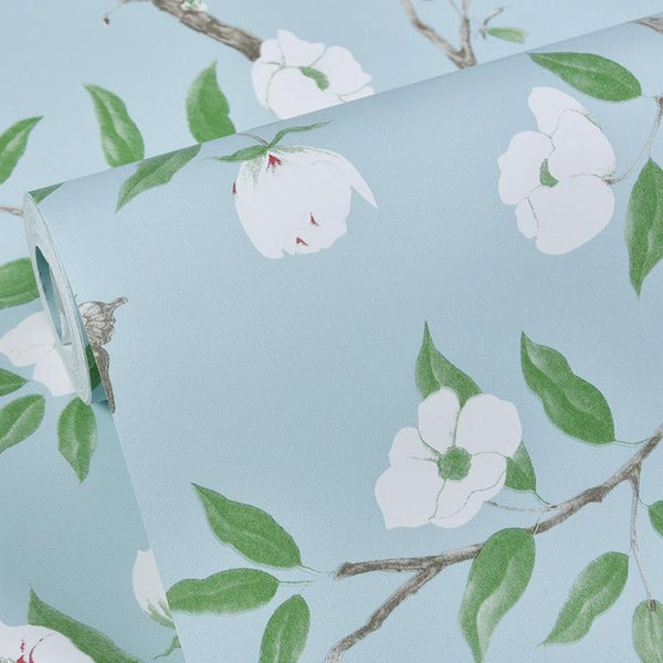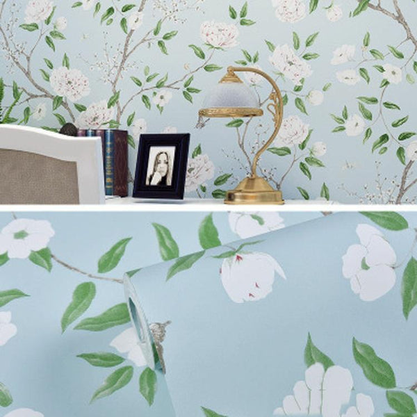 0.53x5m 3D StereoRetro Self-Adhesive Non-Woven Wallpaper Pastoral Flower Bedroom Living Room TV Background Wall Sticker(K2-A8 Light Blue)