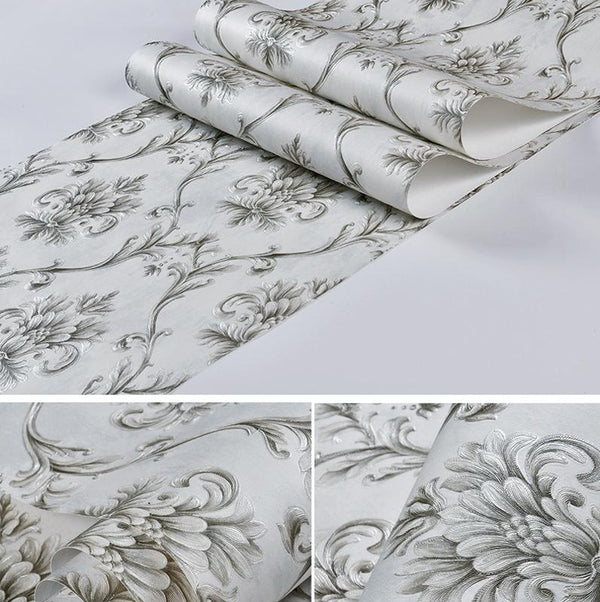3D Pattern Wallpaper Damascus Self-Adhesive Wallpaper Non-Woven Embossed Deep Embossed Background Wall Paper, Specification: 0.53 x 3m(22103)