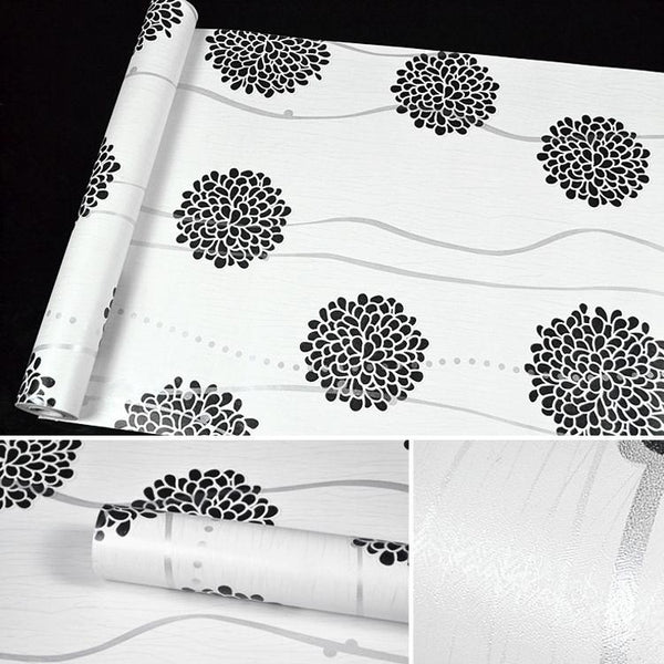 Black Flower Ball Creative 3D Stone Brick Decoration Wallpaper Stickers Bedroom Living Room Wall Waterproof Wallpaper Roll, Size: 45 x 1000cm
