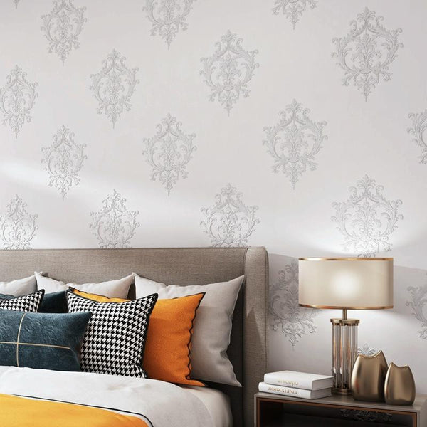 Damascus Self-Adhesive Embossed Wallpaper Thick 3D Non-Woven Fabric Fine Embossed Bedroom Wallpaper, Specification: 0.53 x 3 Meters(1681 Beige)
