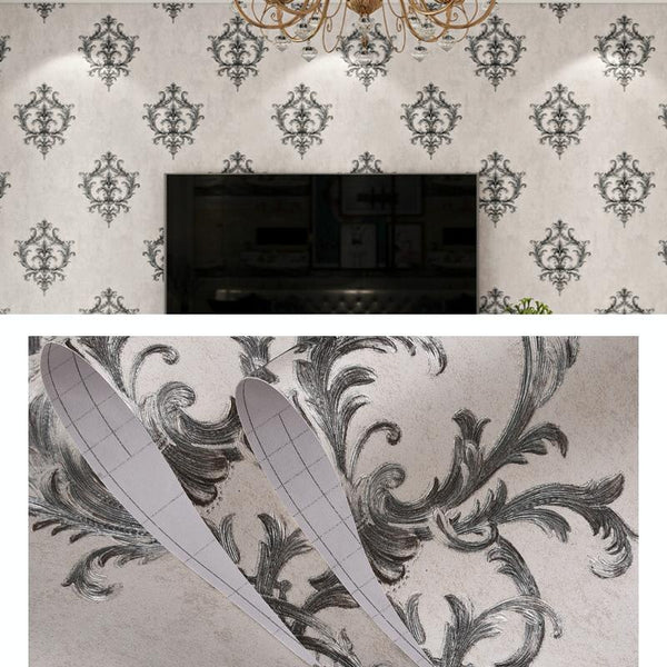 Damascus Self-Adhesive Embossed Wallpaper Thick 3D Non-Woven Fabric Fine Embossed Bedroom Wallpaper, Specification: 0.53 x 3 Meters(1683 Light Grey)