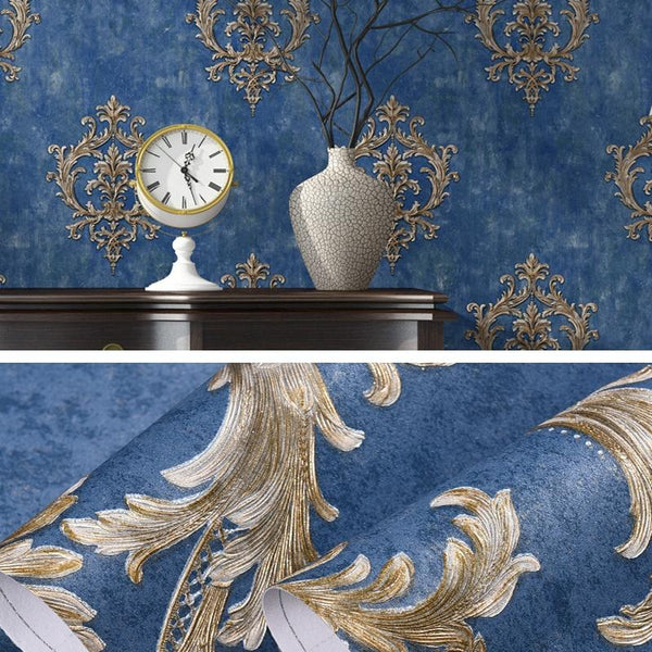 Damascus Self-Adhesive Embossed Wallpaper Thick 3D Non-Woven Fabric Fine Embossed Bedroom Wallpaper, Specification: 0.53 x 3 Meters(1685 Dark Blue)