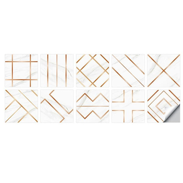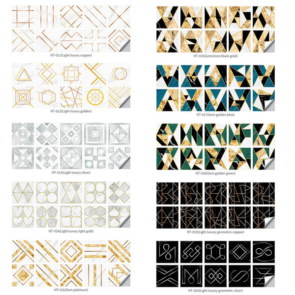 Geometric Pattern Staircase Wall Tile Sticker Kitchen Stove Water And Oil Proof Stickers, Specification: L: 20x20cm(HT-011 Copper)