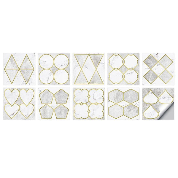 Geometric Pattern Staircase Wall Tile Sticker Kitchen Stove Water And Oil Proof Stickers, Specification: M: 15x15cm(HT-014 Light Gold)