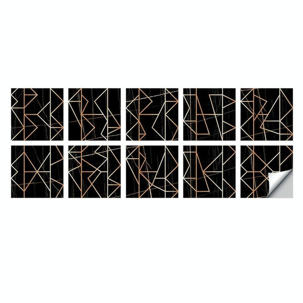 Geometric Pattern Staircase Wall Tile Sticker Kitchen Stove Water And Oil Proof Stickers, Specification: M: 15x15cm(HT-019 Geometric Copper)