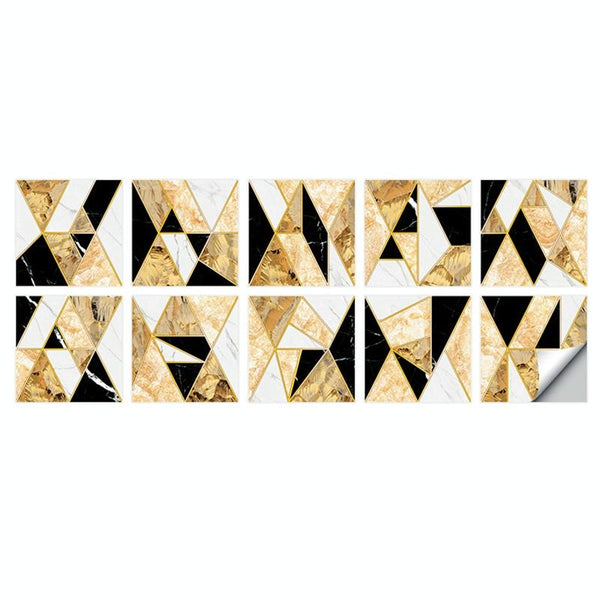 Geometric Pattern Staircase Wall Tile Sticker Kitchen Stove Water And Oil Proof Stickers, Specification: S: 10x10cm(HT-016 Black Gold)