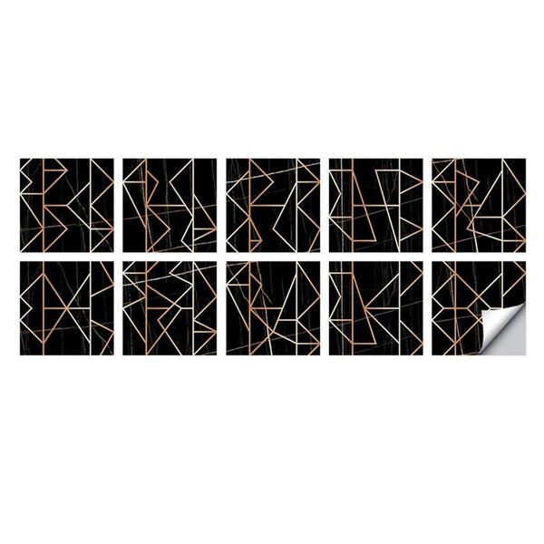 Geometric Pattern Staircase Wall Tile Sticker Kitchen Stove Water And Oil Proof Stickers, Specification: S: 10x10cm(HT-019 Geometric Copper)